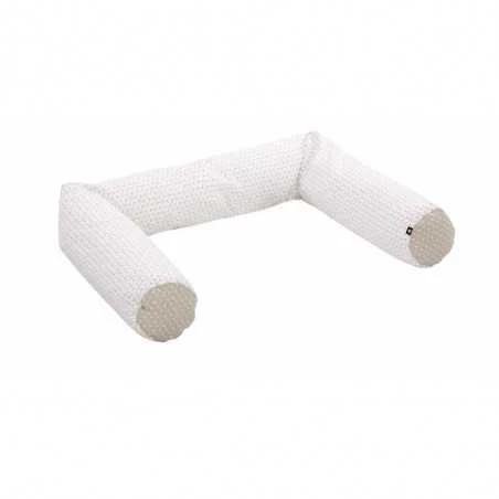 Monikäyttöinen ja paksu reunapehmuste toimii niin pinnasängyssä kuin vaikka hoitopöydällä. Hauska putkilomallinen reunapehmuste suojaa pientä päätä kovilta pinnoilta ja näyttää hyvältä sisustuksen kanssa. Alvi pinnasängyn reunapehmusteessa on Öko-Tex sertifoitu irroitettava 100% puuvillapäällinen.