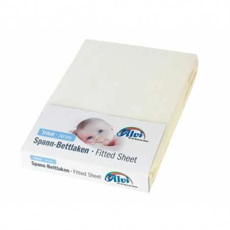 Alvi trikoolakana on valmistettu puuvillatrikoosta, mikä tuntuu ihanan pehmoiselta vauvan ihoa vasten. Aluslakana on varustettu kumi nauhareunuksella, jotta se pysyy varmasti paikallaan patjan päällä levottommankin nukkujan alla. Myös lakanan vaihtaminen on helppo homma muotoonommellun aluslakanan ansiosta.
