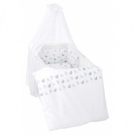 - Samaan sarjaan on saatavana myös pussilakanasetti ja reunapehmuste, jolloin voit somistaa vauvan pinnasängyn yhteen sopivilla elementeillä.