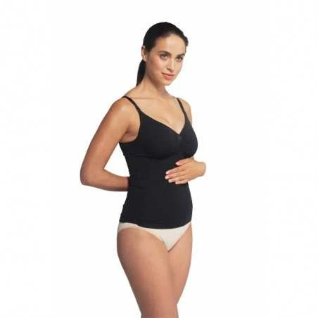 Carriwell Cami imetystopissa on ainutlaatuinen kuppimalli, minkä avulla äidin ja vauvan välinen ihokontakti on maksimoitu. Kupin saa helposti auki yhdellä kädellä. Toppi ei rullaudu ylös alareunan tukineuloksen avulla ja keskivartalo on tuettuna.