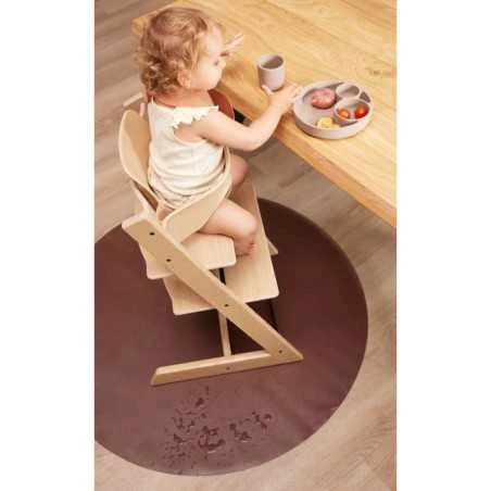 Filibabba – Pyöreä Lattiasuoja suojaa lattioita roiskuvalta ruoalta, läikkyvältä juomalta, sekä naarmuilta. Lattiasuoja pitää ruokapöydän alueen siistinä ja tekee ruokailun jälkeisestä siivoamisesta todella helppoa.