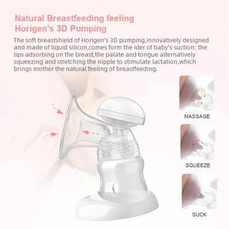 Horigen tuplarintapumppu on nopea, tehokas ja erittäin hiljainen ladattava pumppu. Voit valita 3 eri pumppaustilan välillä ja säätää imutehoa sekä nopeutta saadaksesi juuri sinulle sopivan pumppauskokemuksen. Rintapumppu muistaa viimeisimmät asetukset automaattisesti, eli sopivia säätöjä ei tarvitse tehdä joka kerta uudestaan. Pehmeät 3D-silikonisuppilot lisäävät mukavuuttasi ja matkivat vauvan imutyyliä.