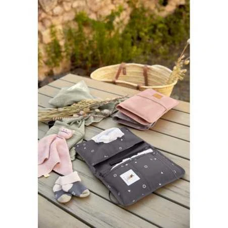 Lässig matkahoitoalusta sopii mukaan otettavaksi, ja se istuu mihin tahansa käsilaukkuun, hoitolaukkuun tai reppuun. Se pitää tarvittavat vaipanvaihtotarvikkeet hyvässä järjestyksessä, ja mukana tulee vedenpitävä hoitoalusta, jotta vaipanvaihto onnistuu siististi missä tahansa. Lässig hoitoalusta-taskussa on myös näppärä paikka kosteuspyyhepakkaukselle.