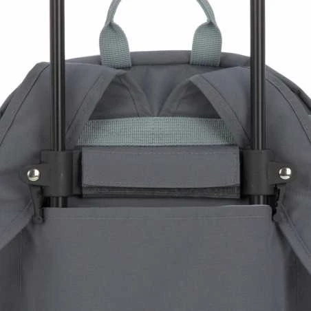 Lässig matkalaukussa on iso osio lapsen vaatteille ja leluille, edessä vetoketjullinen tasku ja laukun mukana tulee oma erillinen pyykki- ja kenkäpussi. Vetokahvan korkeus on valittavissa kahdesta vaihtoehdosta.