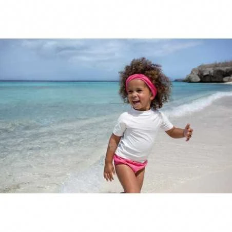 Lyhythihaisessa Lässig aurinkosuojapaidassa on 50+ UV-suoja. Paitoihin on saatavilla myös sävyihin sopivia uimavaippoja sekä aurinkosuojahattuja.