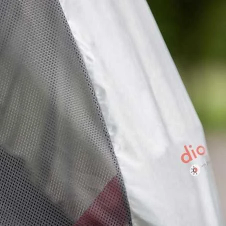 Monipuolinen kesäsuoja lastenrattaisiin tai turvakaukaloon. Toimii sekä aurinkosuojana, että hyönteisverkkona. Päällä oleva kangas estää UV-säteet, ja sivuila oleva verkkokangas varmistaa ilman virtaamisen. Diono aurinkosuojan kevyt rakenne varmistaa sen että suoja menee pieneen tilaan säilytystä ja kuljetusta varten. Tämä yleismallinen hyttysverkko sopii useimpiin lastenrattaisiin sekä turvakaukaloihin.