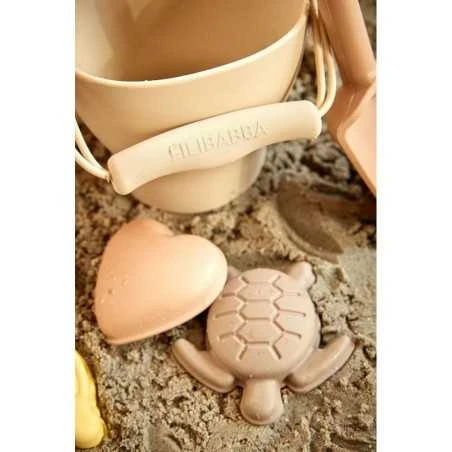 Hiekkalelusettiin kuuluu 5 söpöä hiekkamuottia, lapio, ämpäri ja kätevä kansi, joka on samalla frisbee. Muoteissa seikkailevat meritähti, sydän, sateenkaari, simpukka ja pikku kilppari. Rantalelujen silikonimateriaali on erittäin kestävää, joten Filibabba Hiekkalelusetillä lapsesi leikkii kesästä kesään.
