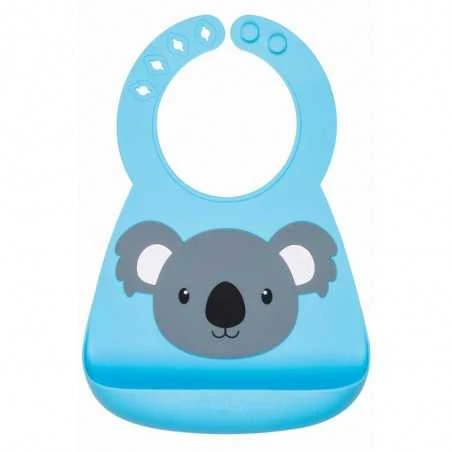 Ruokalappu on valmistettu pehmeästä silikonista, joka varmistaa että lapsesi vaatteet pysyvät puhtaina ja kuivina. Ominaisuuksina löytyy kouru, joka kerää tippuvan ruoan ja tukeva tupla-nappikiinnitys, jotta lapsi ei saa vedettyä ruokalappua pois kaulasta. 6+ kk ikäiselle.