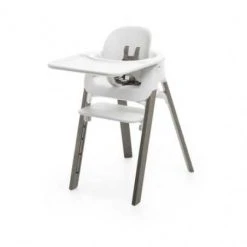 Paketti Stokke Steps Syöttötuoli White/Hazy Grey + Baby Set + Tarjotin White