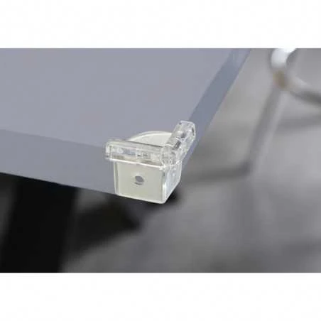 Kiinnitetään pöydän pintaan mukana tulevilla teipillä ja ne soveltuvat käytettäväksi niin olohuoneen pöytään kuin ruokapöytäänkin. Kulmasuojat ovat valmistetty pehmeästä, mutta kestävästä silikonista ja ne ovat läpinäkyviä.