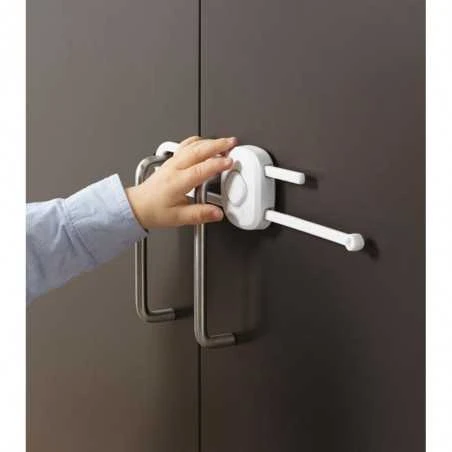 Safety 1st Liukulukko on varusteltu säädettävällä liukumekanismilla, mikä sopii millaisiin kaapin oviin tahansa, joissa on kahvat tai nupit. Lapsilukon saa auki painamalla yllä ja alla olevia nappeja sekä liu’uttamalla lukon pois “kiskoilta”.