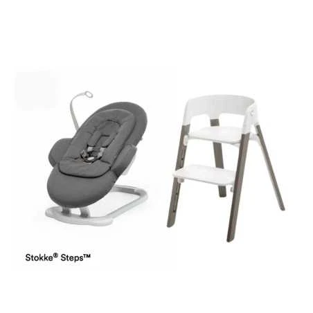 - Kätevä lisäosa Stokke Bounser sitteri käy Stokke Steps syöttötuoliin, jolloin voit käyttää Steps syöttötuolia jo vauvalla